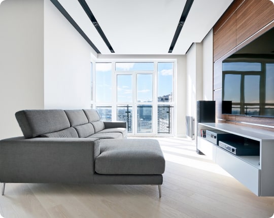 • Стандартный белый профиль вполне подходит для такого направления, под заказ его можно заламинировать черной, серебристой или другой пленкой.