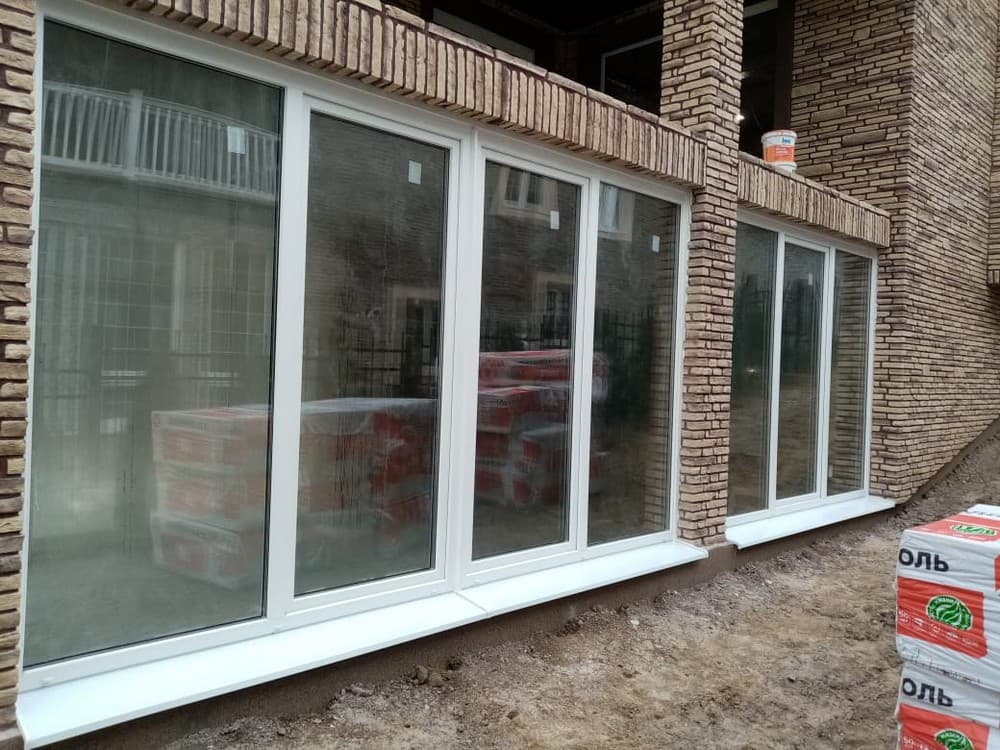 Выполненные работы: Установлено 5 окон, Остекление входной группы, профильная система REHAU Brillant и Delight, Фурнитура Siegenia Titan AF, Стеклопакет 40 мм с раскладкой внутри