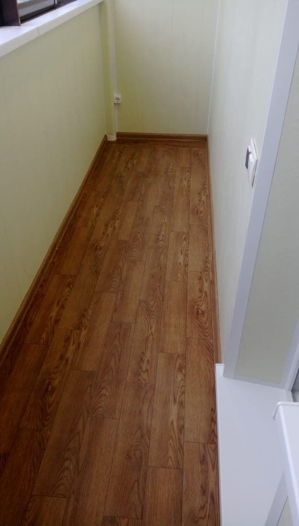 Перейти в галереюВыполненные работы: Остекление лоджии профилем REHAU Grazio, Утепление и отделка ламинированными панелями, Проводка электрики и установка светильников, Вывоз мусора