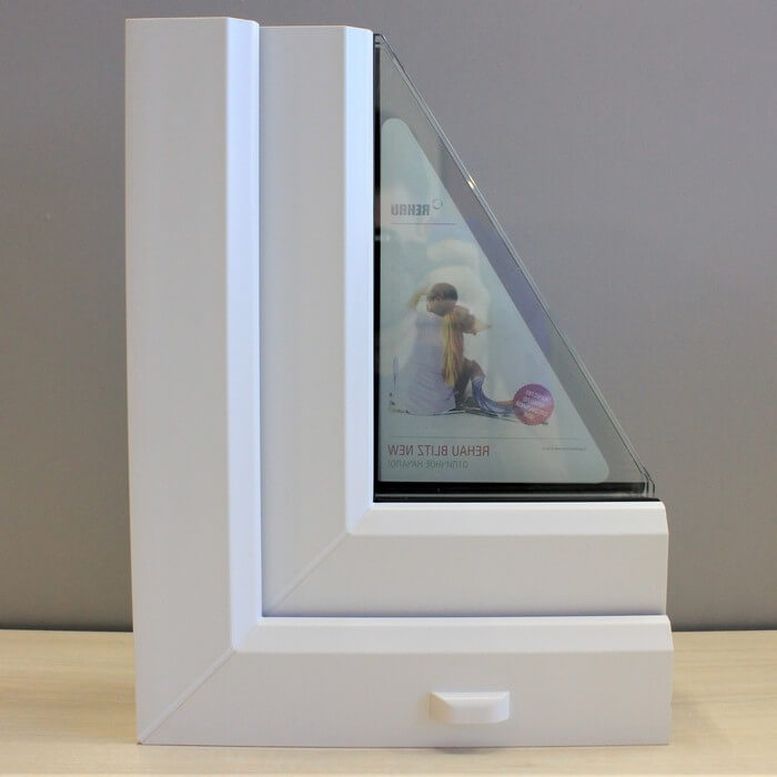 В окнах REHAU Blitz NEW можно установить различные стеклопакеты, включая стандартные двухкамерные или энергосберегающие стеклопакеты для повышения теп...
