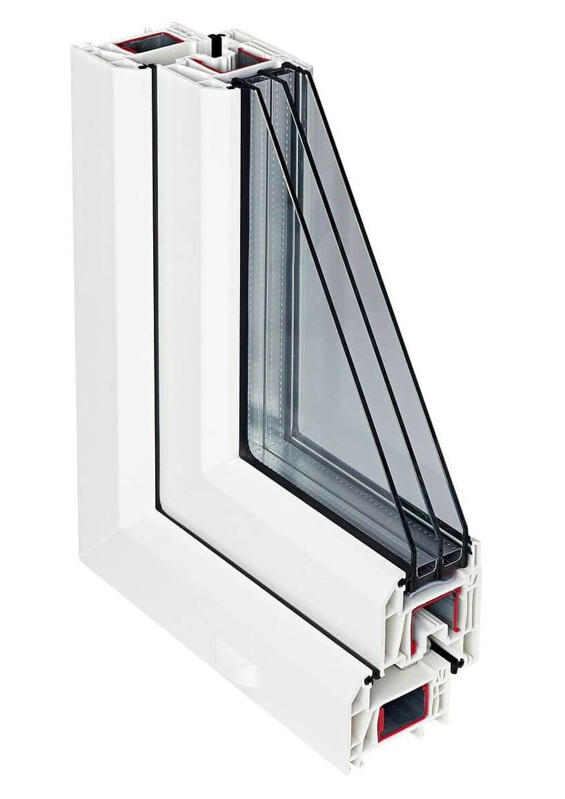 Благодаря монтажной глубине 70 мм и 5 внутренним камерам система обладает очень хорошей теплосберегающей способностью и позволяет устанавливать энергоэффективный двухкамерный стеклопакет толщиной до 40 мм. Такие окна могут эксплуатироваться даже в суровом северном климате со средней зимней температурой ниже -30°С.